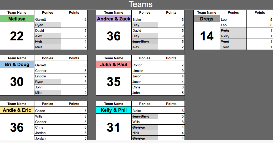 A bunch of us look to be in trouble with only 2 ponies left except that we all have favorites who will undoubtedly go deep. Andi/ Eric and Julia/Paul battle for the last team standing points. Somehow the dreg Leo is staying strong making me scratch my head a little since he hasn’t gotten much screen time.
